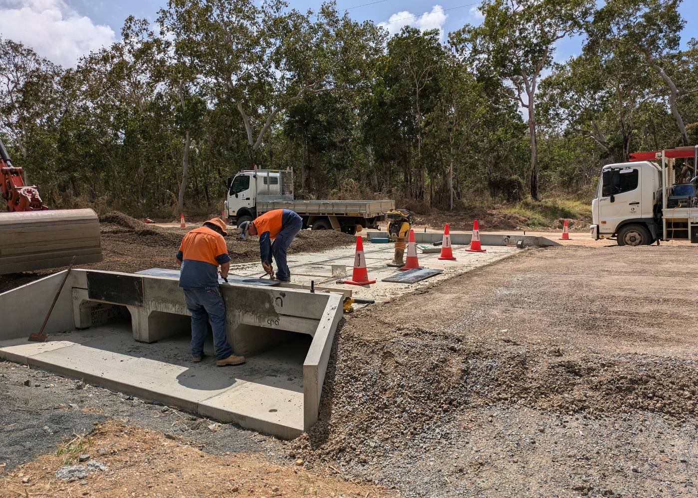 Recent work includes the construction and installation of a drainage structure to manage stormwater, including concrete causeway construction at key road crossings. These will help improve water flow and prevent flooding, ensuring the road remains safe and passable in wet conditions.