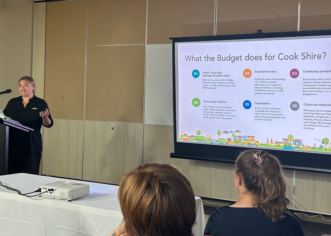 Held at the Cooktown Events Centre, the Community Update included a presentation from Council’s CEO and key officers, providing updates on: