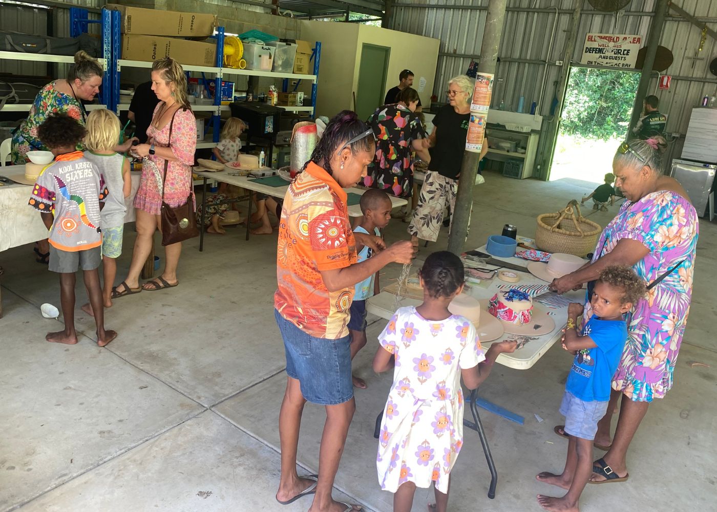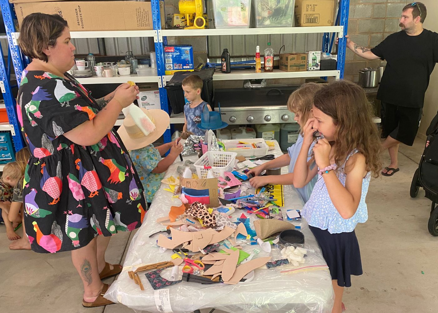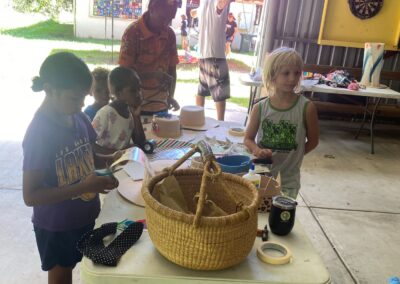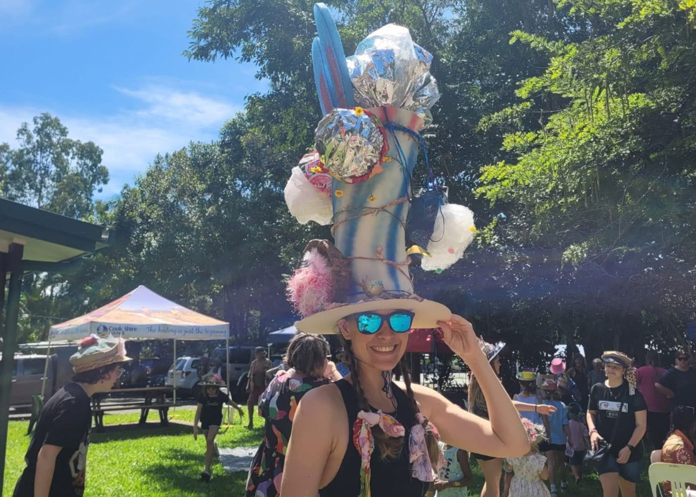 The highlight of the day was the Mad Hatters Recycled Easter Hat Making Workshop, run by Kajeet Art Therapy in partnership with RASN Tropical North, where over 40 adults and children – from toddlers as young as 18 months to creative souls aged 65+ – crafted some amazing Easter hats from recycled hats and household items. Old fans, yoga mats, shoes, bottle lids, paper straws, and wrapping paper were transformed into works of art using spray paint, string, foil, plants and more. A huge thank you goes to CDCC for generously donating hats for the workshop.
