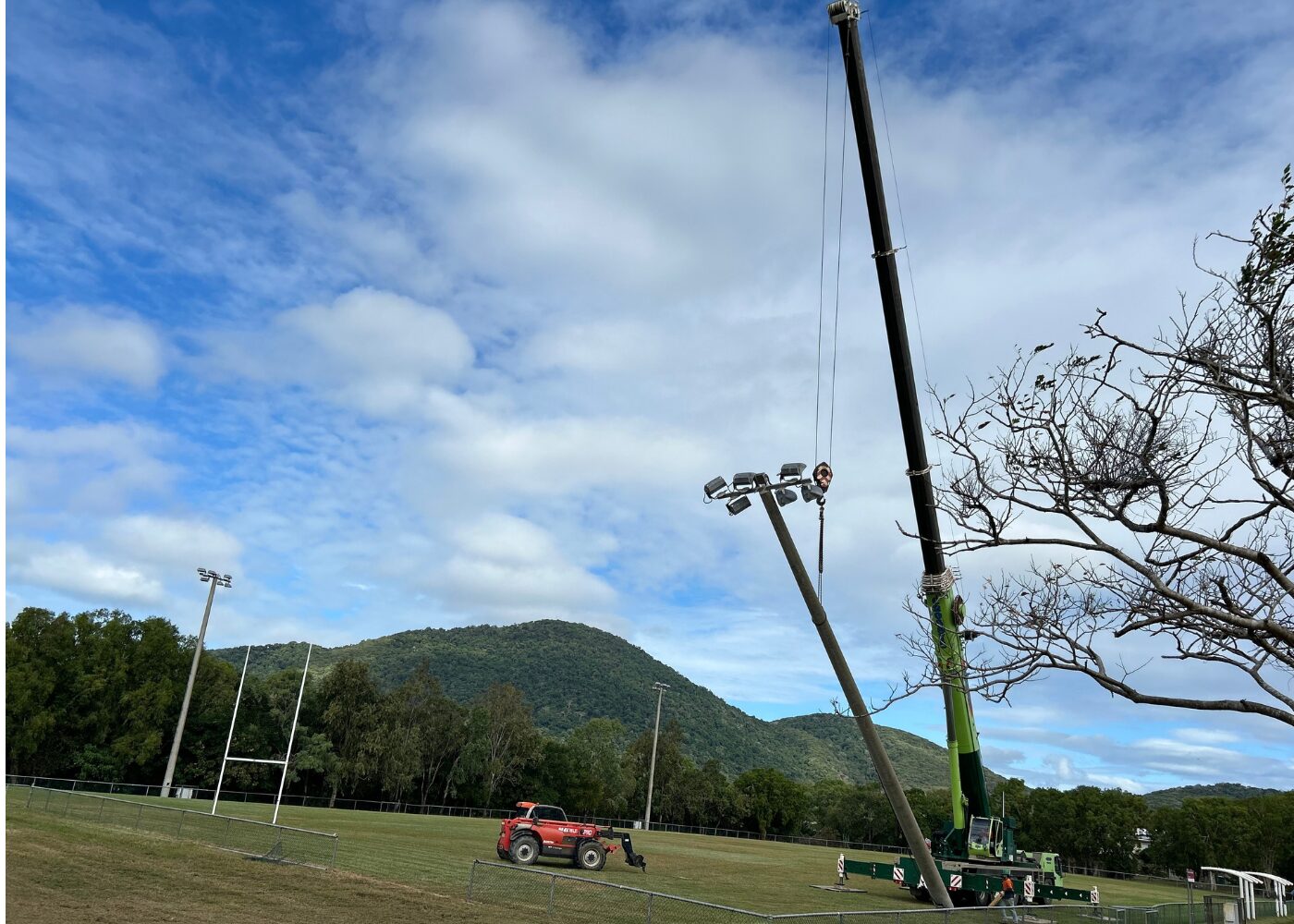 A special thank you goes to Crossy’s Crane Hire from Cairns, who volunteered their time, expertise, and crane to assist with the removal of outdated lighting infrastructure—helping prepare the oval for the installation of new field lighting. Their contribution significantly reduced costs and provided valuable support to the community.