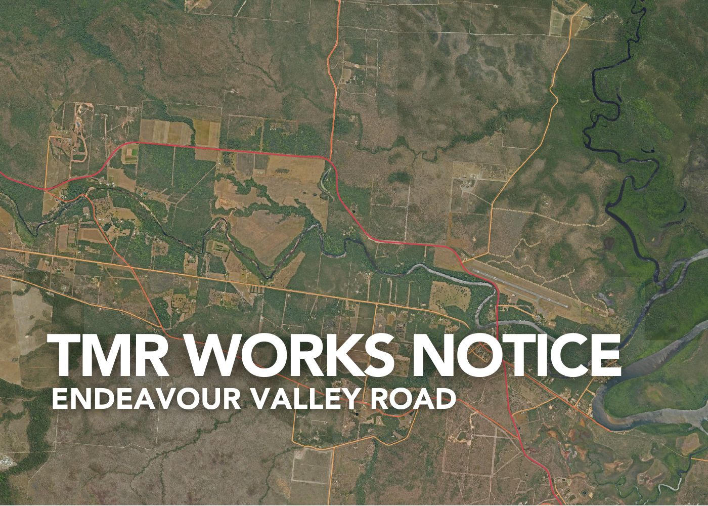 We have been advised that the Department of Transport and Main Roads (TMR) is about to start resealing works on sections of Endeavour Valley Road, Cooktown.