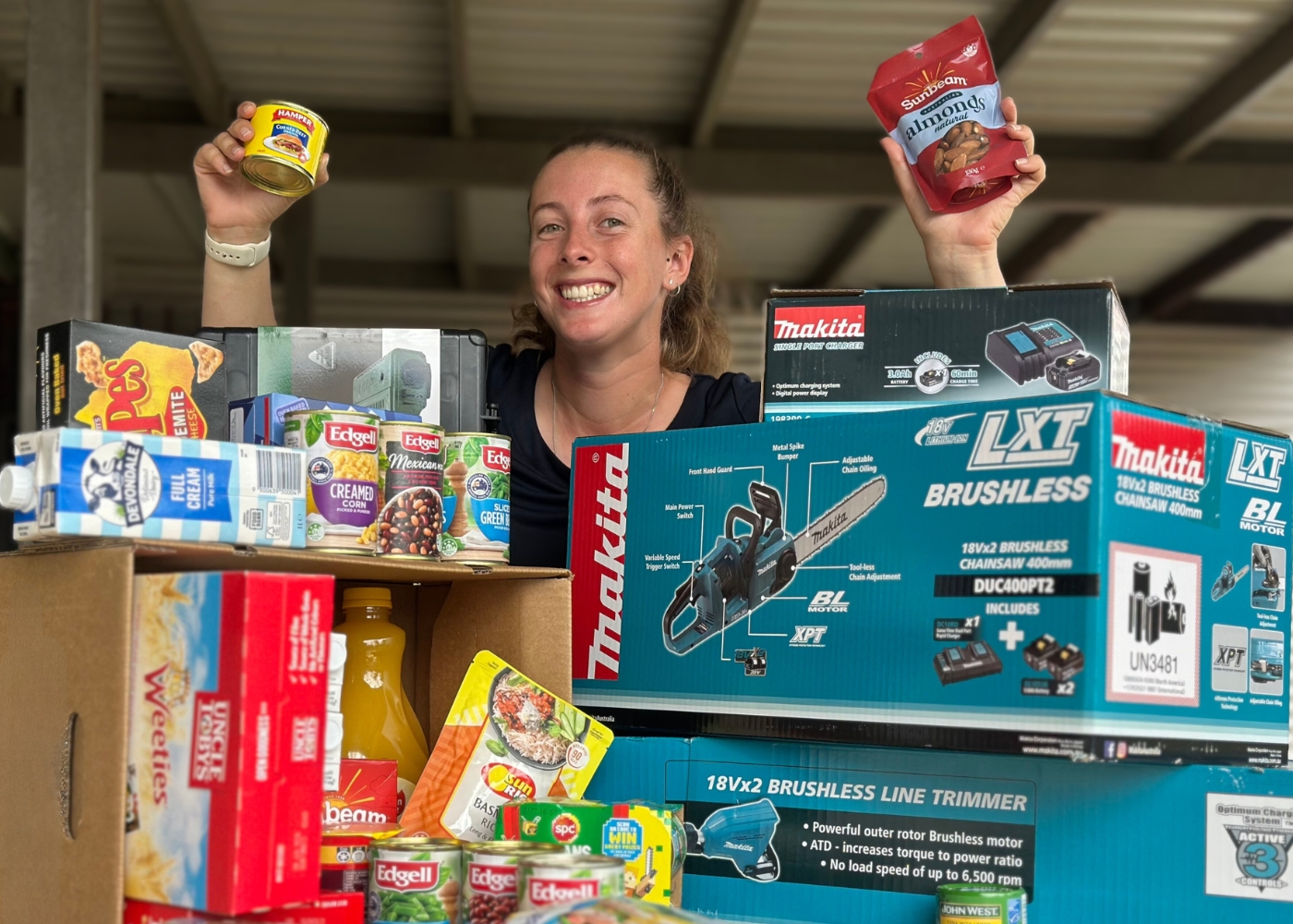 Pictured above: Cook Shire’s Disaster Management Officer, Sarah Frew with just some of the prizes up for grabs as part of Council’s Get Ready! Yard Clean Up Competition.