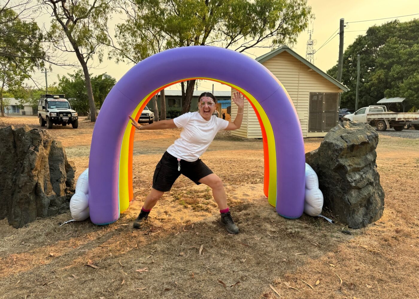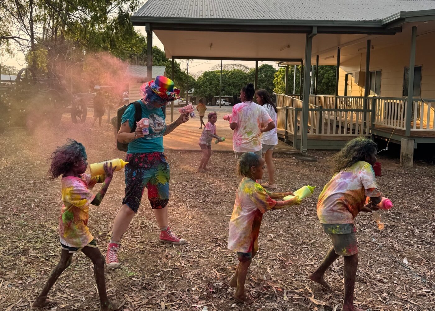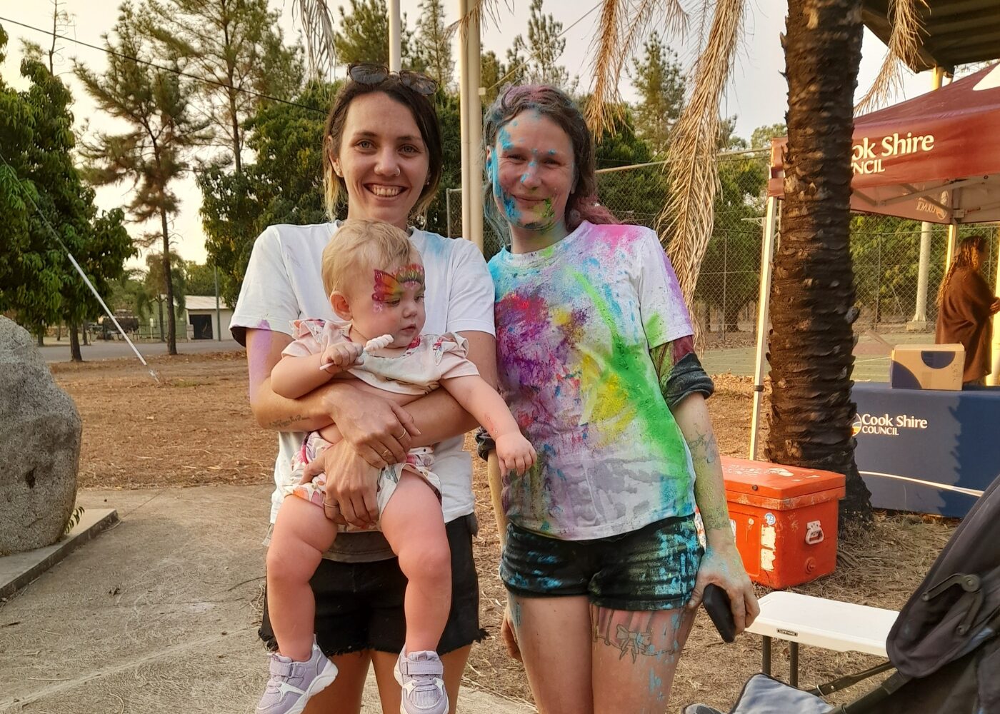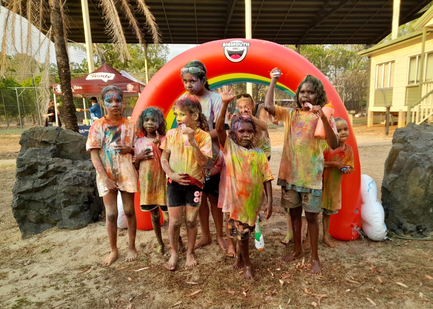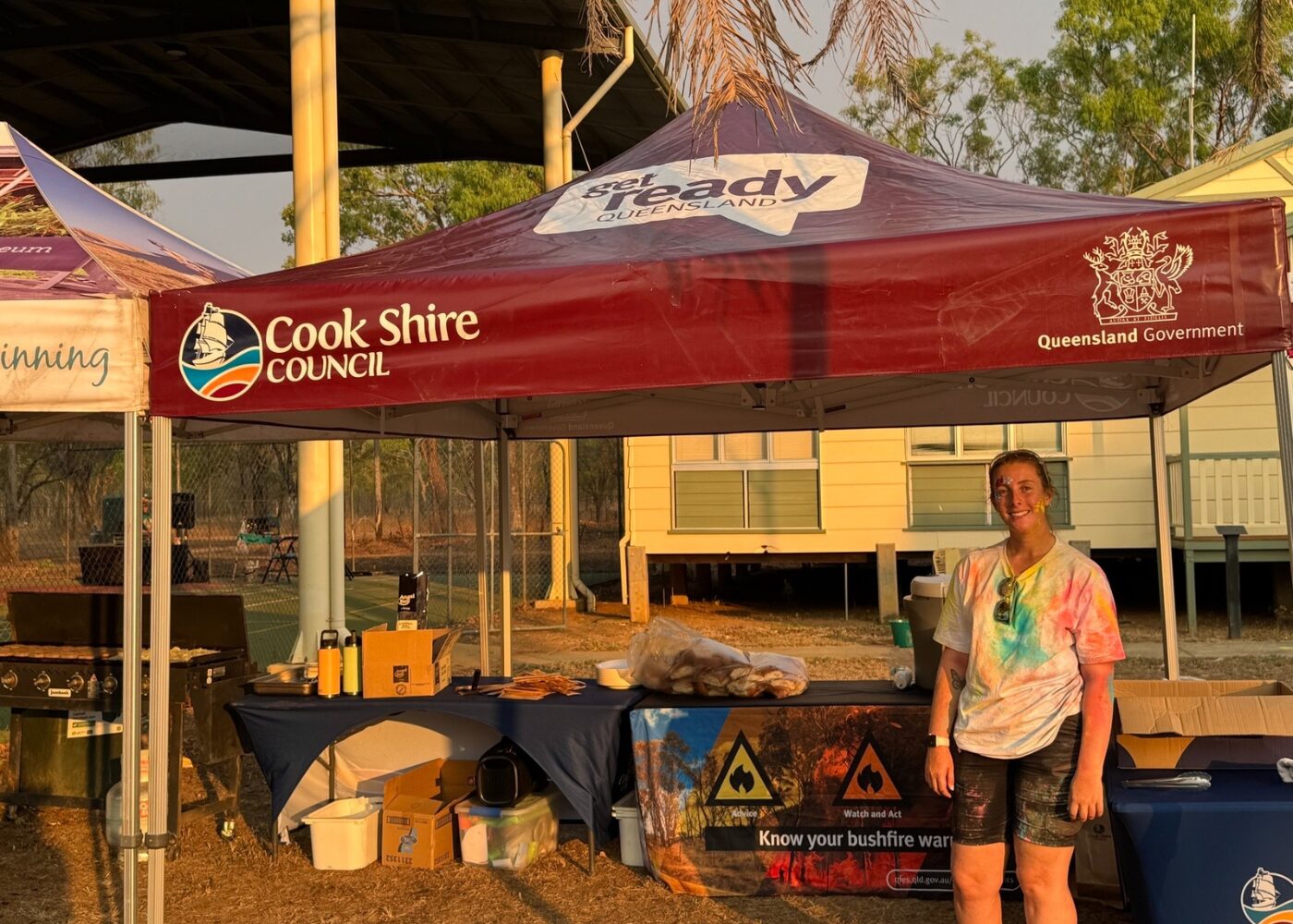Delivered by Cook Shire Council in partnership with Get Ready Week QLD, the Sport and Rec and Events teams, the event offered something for everyone. Children were entertained by “Crazy Bron” with a kids’ disco bubble party, face painting, and a lolly scramble. Attendees also took part in a colourful school oval colour run, with the Rural Fire Brigade hosing down participants to add to the excitement.