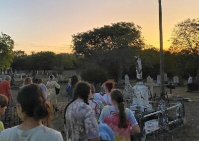 Set against the hauntingly beautiful backdrop of the Pioneer Cemetery, the performance transported audiences back in time, illuminating the lives and stories of Cooktown’s pioneers. The mix of emotion, authenticity, and subtle humour created an atmosphere that audience members described as “fantastic,” “spooky,” “entertaining,” and “deeply moving.”