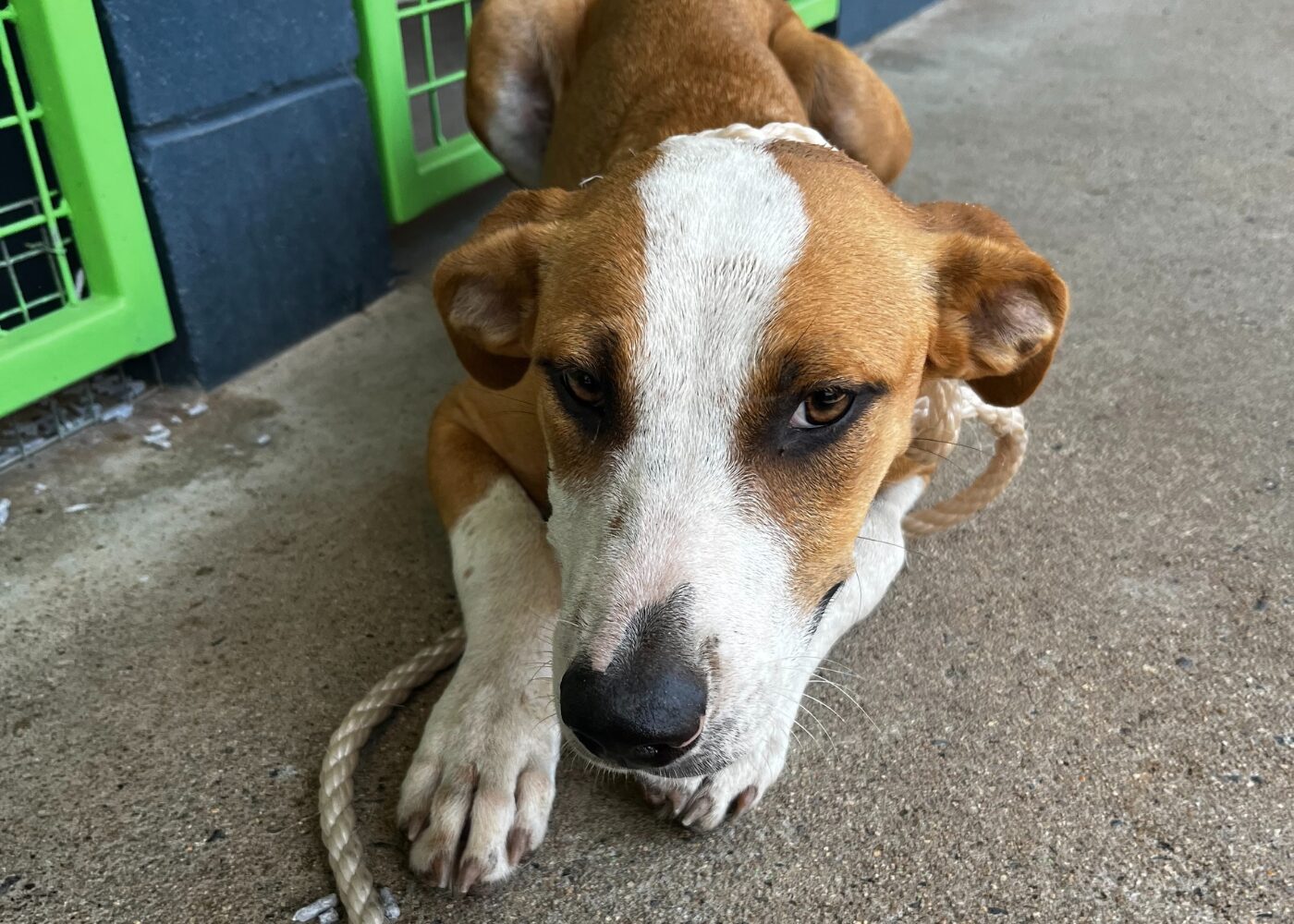 Male, white and brown, crossbreed, picked up in Coen Friday 7 November 2025.