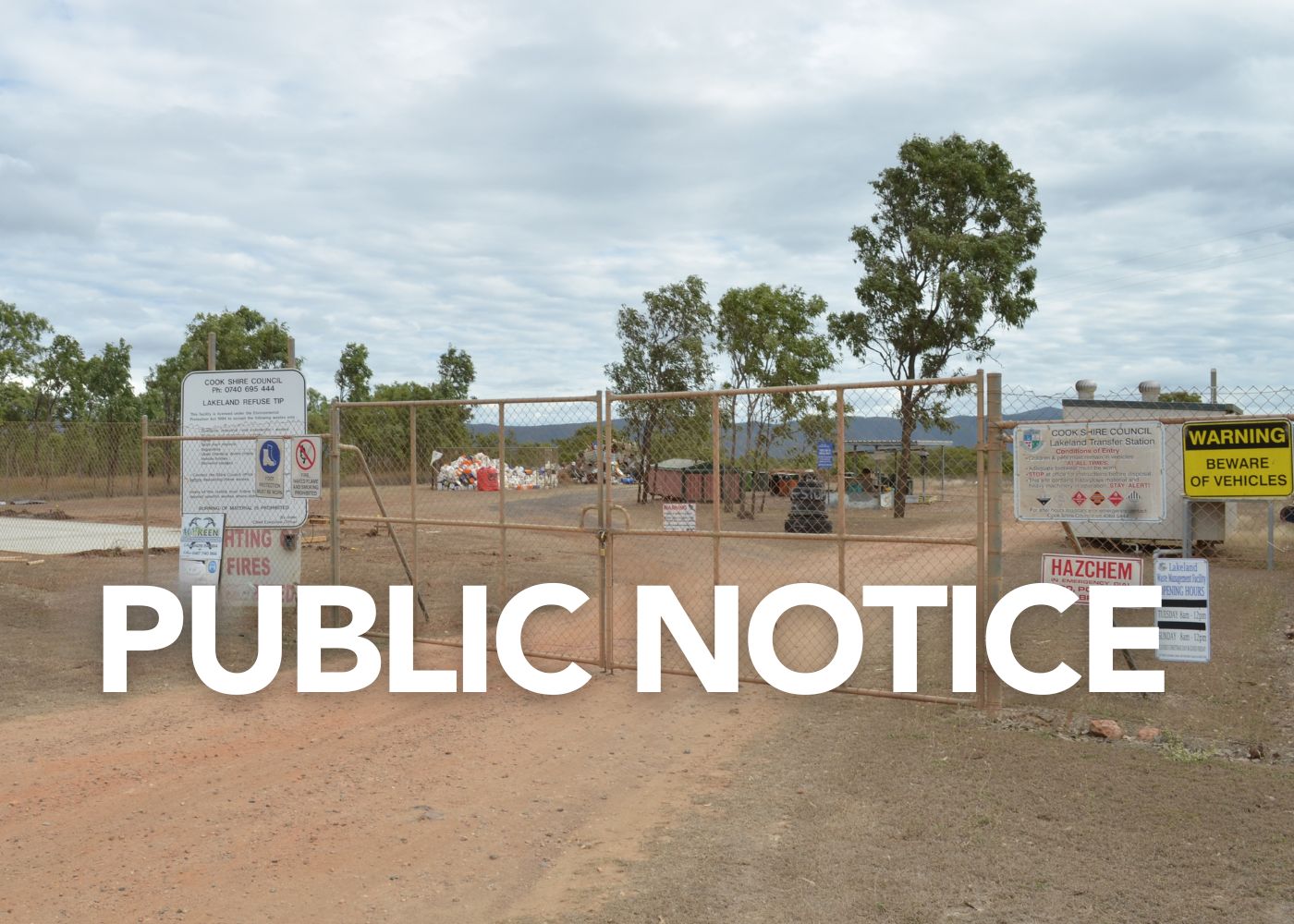 Cook Shire Council acknowledges community concerns regarding the Lakeland Waste Transfer Station (WTS) not currently being open on Saturdays and appreciates the community’s patience and understanding.