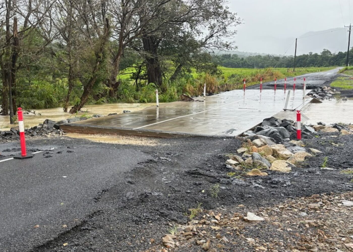 Initial inspections have identified damage along sections of Bloomfield Road, including at Platypus Creek, where the approaches on both sides of the crossing have scoured and washed out, creating a noticeable step in the road surface.