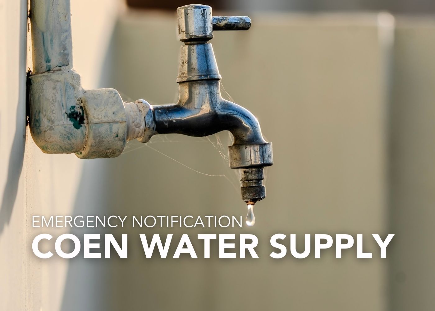 Cook Shire Council advises that the Coen water supply will be shut off at 10:00pm tonight as part of preparations for Tropical Cyclone Narelle.