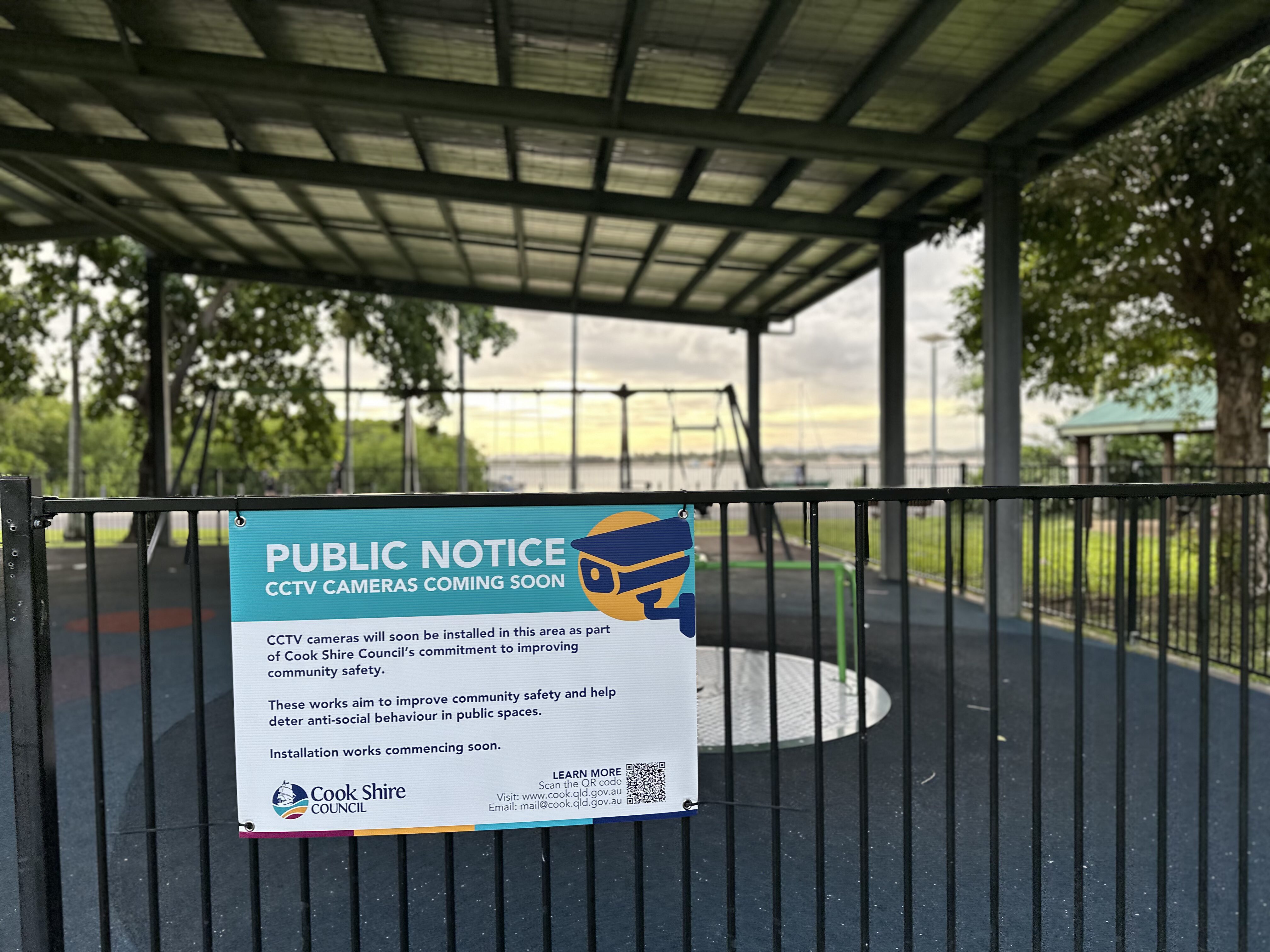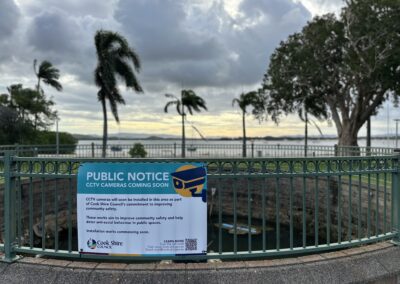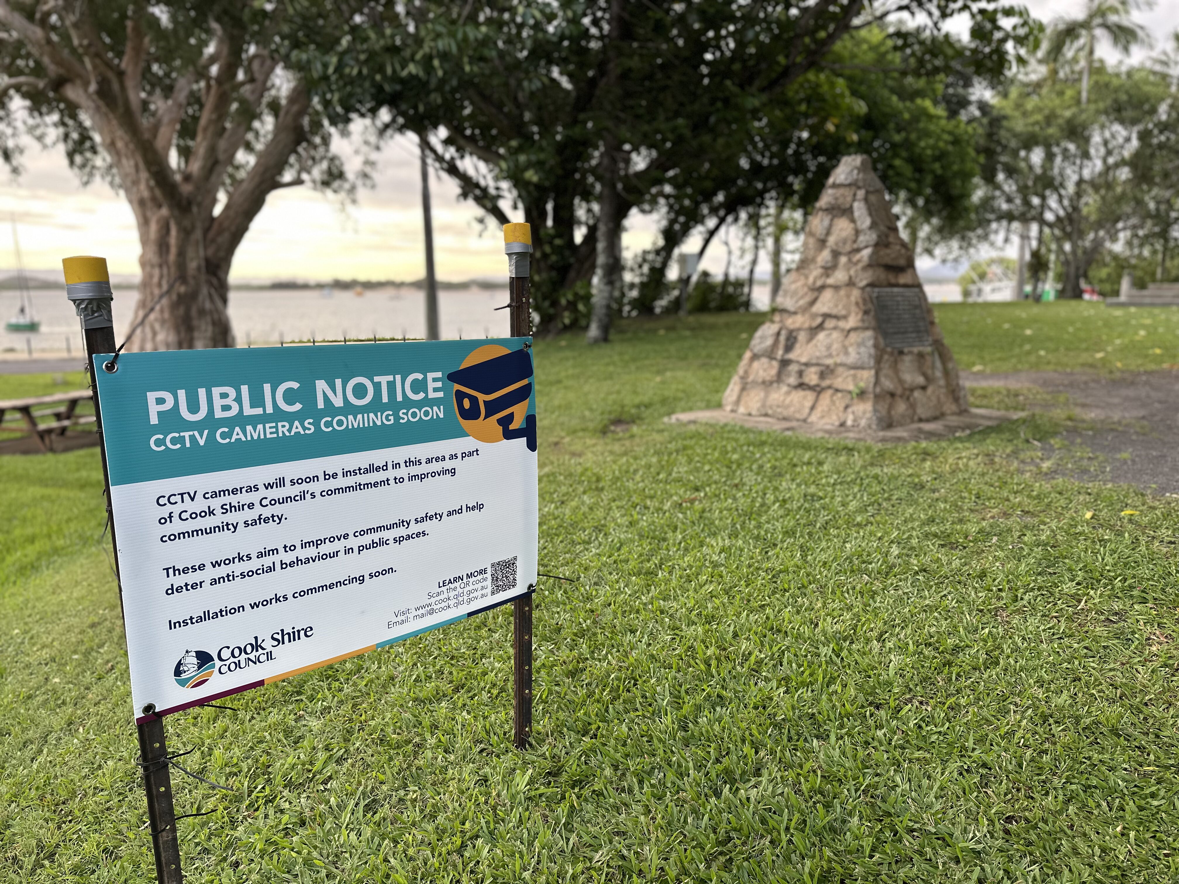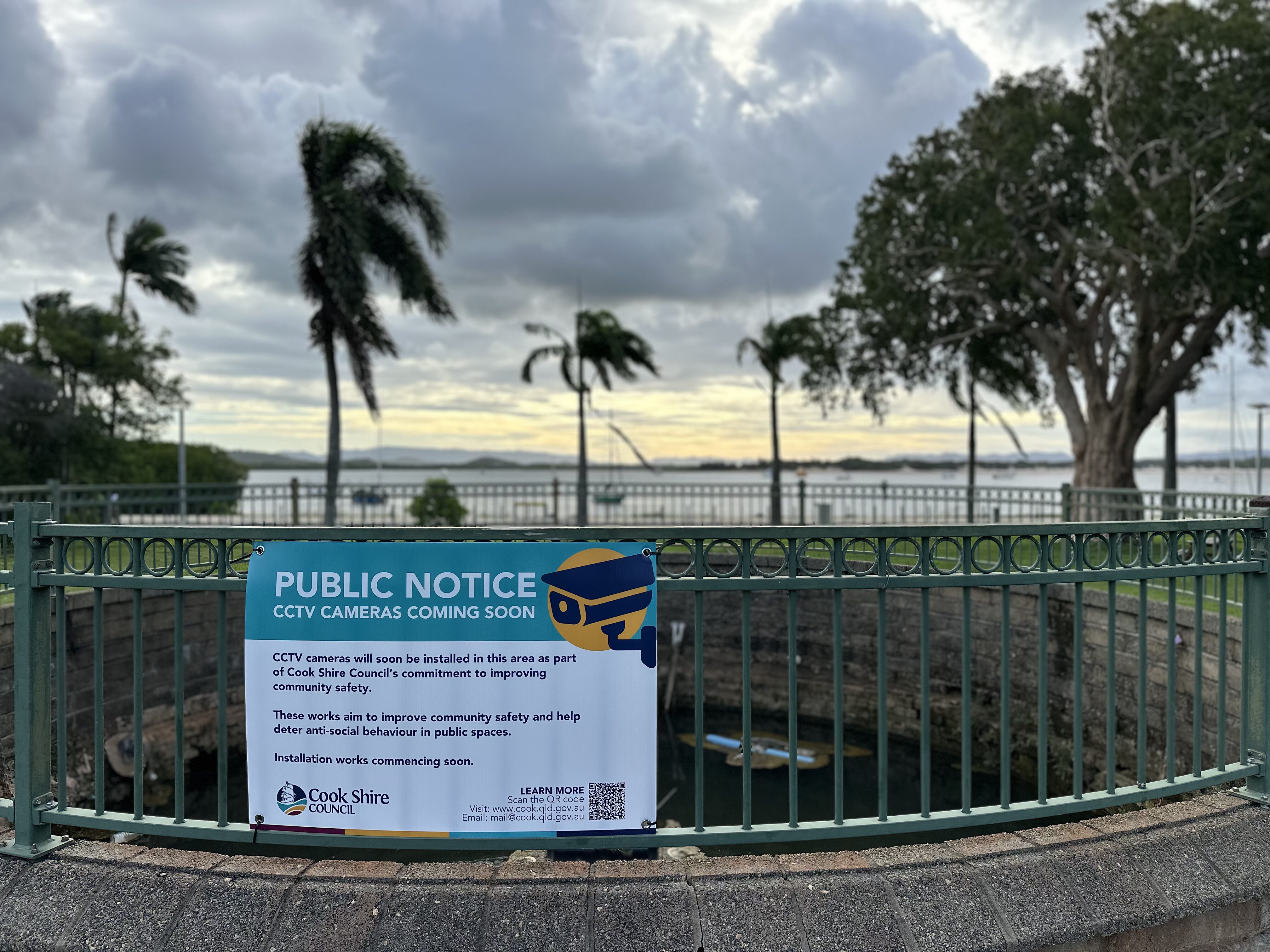 The Cooktown Waterfront CCTV Safety Initiative is progressing, with new signage now installed at key locations to inform residents and visitors that CCTV cameras are coming soon.